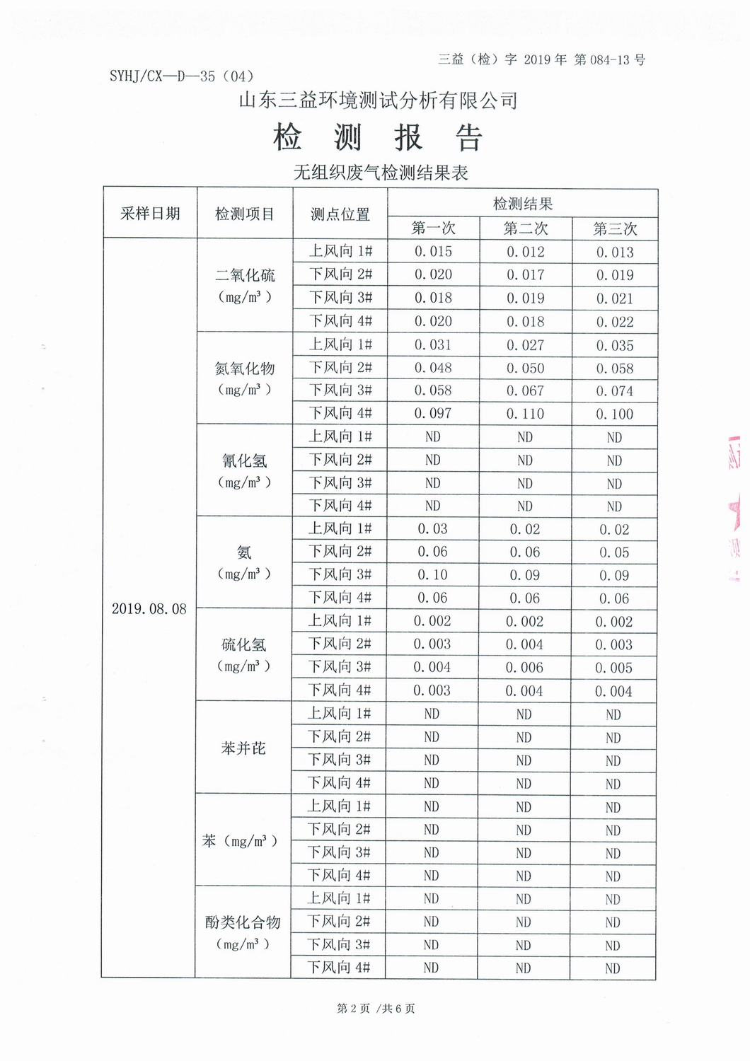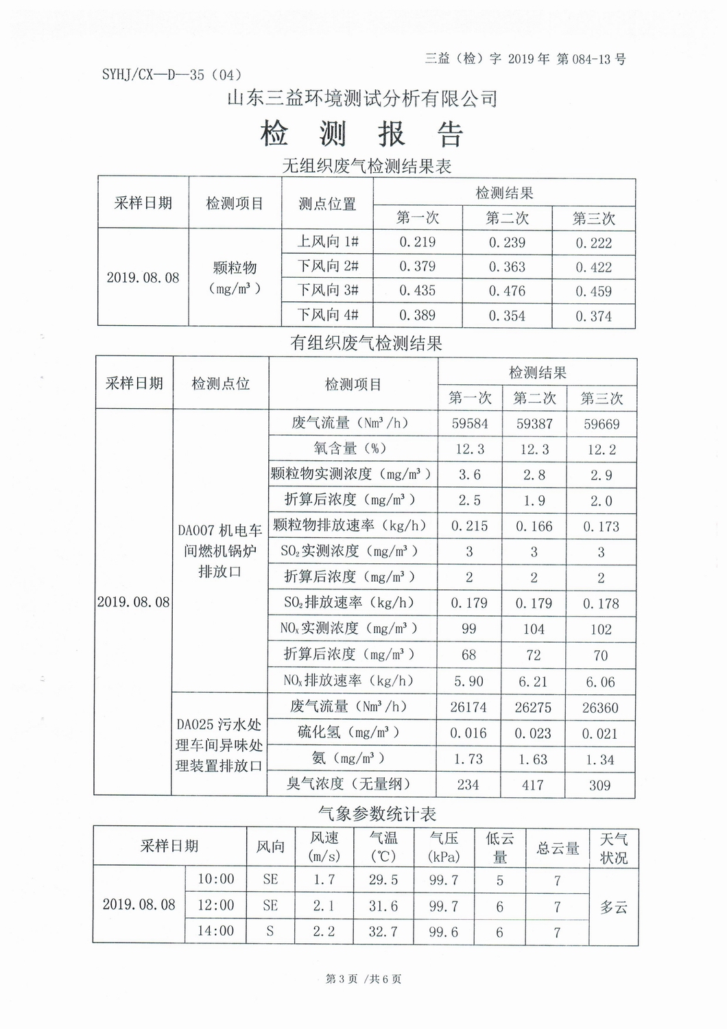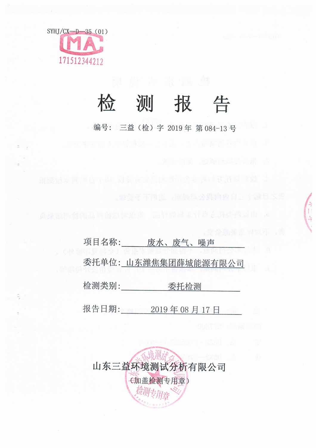 山東濰焦集團(tuán)薛城能源有限公司8月份檢測報(bào)告
