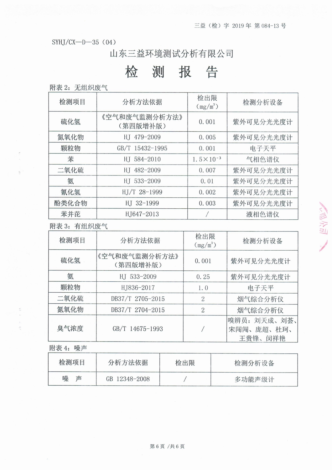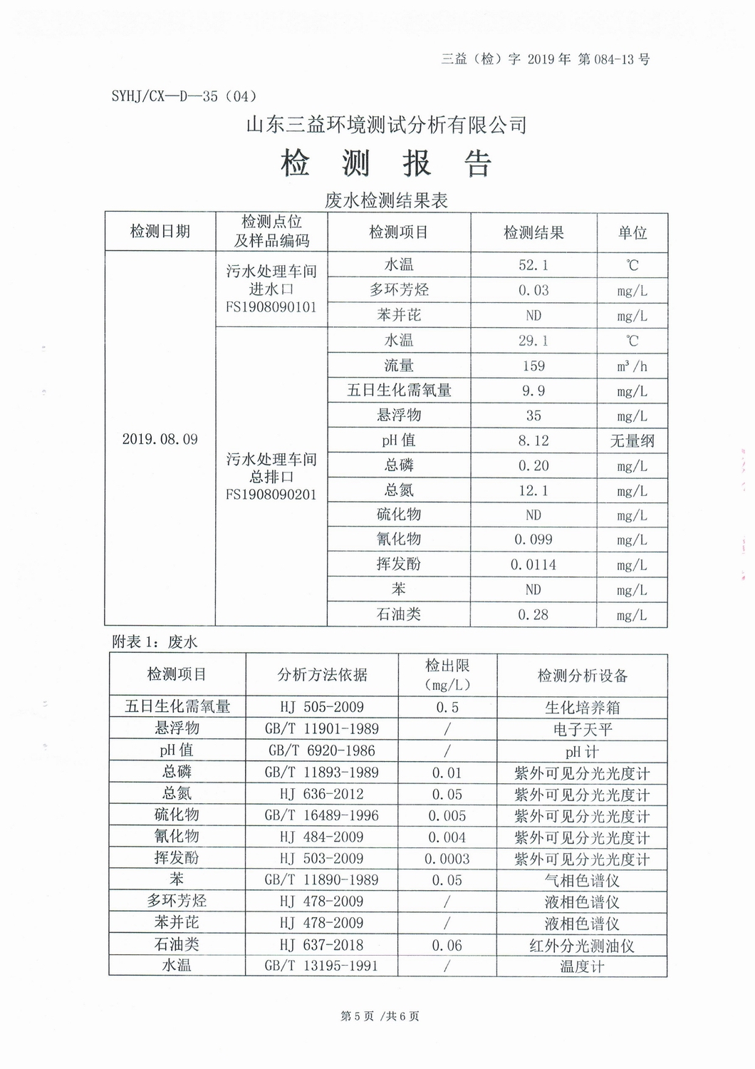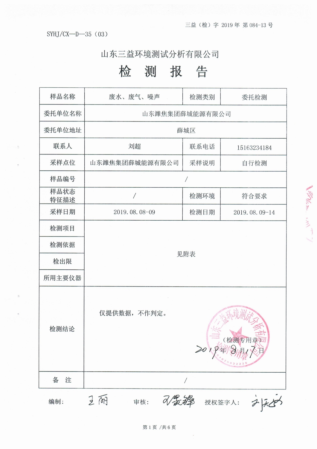 山東濰焦集團(tuán)薛城能源有限公司6月份檢測報(bào)告