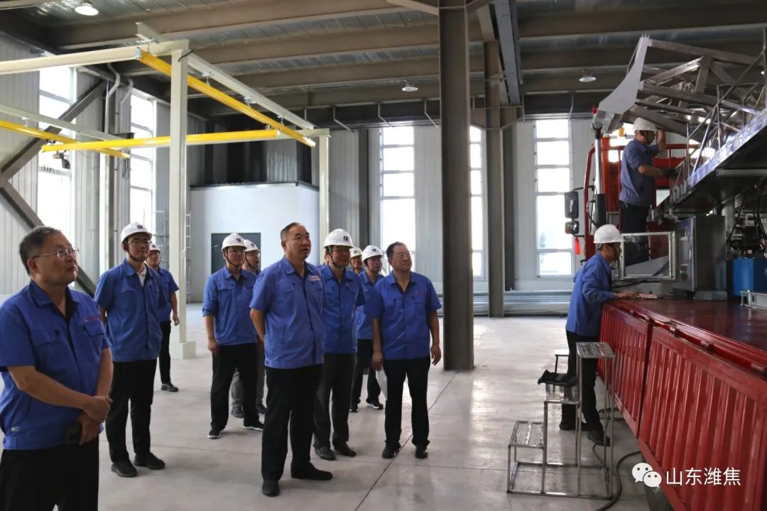 在公司裝配車間現(xiàn)場,劉良玉一行詳細了解機械裝配情況,仔細察看裝置沙袋模擬裝卸雞全流程運行情況,并就機械技術研發(fā)、制作及電耗成本降低等相關問題進行深入交流。